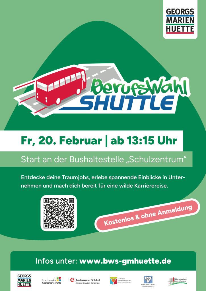 Du stehst vor der großen Entscheidung, welchen beruflichen Weg du nach der Schule einschlagen möchtest? Du stellst dir die Frage, welche Berufe es überhaupt gibt und welche Unternehmen zu dir und deinen Interessen passen? Dann ist der BerufsWahl Shuttle genau die richtige Veranstaltung für dich!