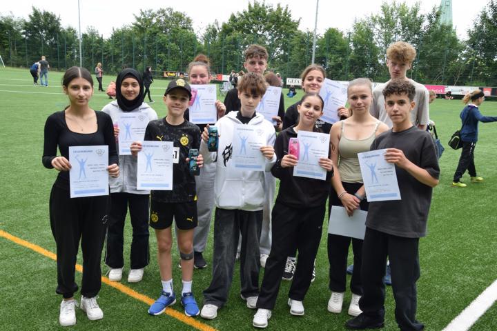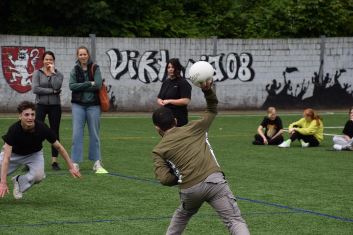 Anschließend fand ein Völkerballturnier statt, bei dem Klassenteams gegeneinander spielten und einen Sieger im Doppeljahrgang (5/6, 7/8, 9/10) ermittelten.