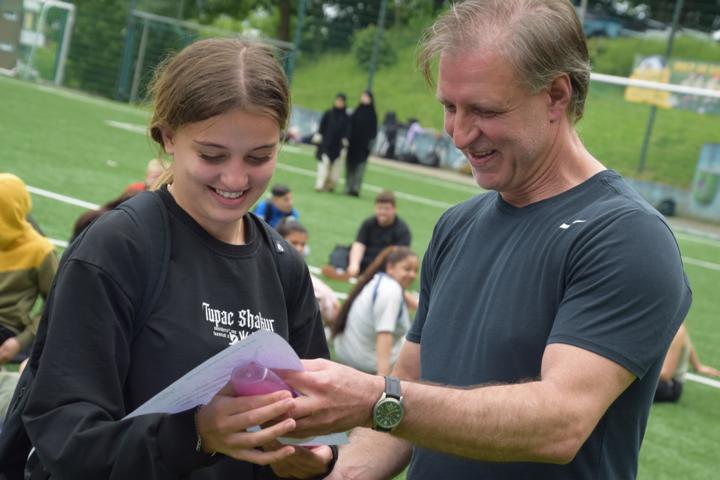 In diesem Jahr spielte das Wetter mit, so dass das Sportfest am 11.06. wie geplant erstmals für alle Schülerinnen und Schüler der Sophie-Scholl-Schule auf dem Rehlberg und rund um die Sporthalle "Alte Wanne" stattfinden konnte.