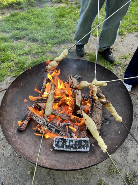 Abends ließen wir den Tag bei netter Musik am Lagerfeuer ausklingen, mit Stockbrot, Popcorn und Schnitzen.
