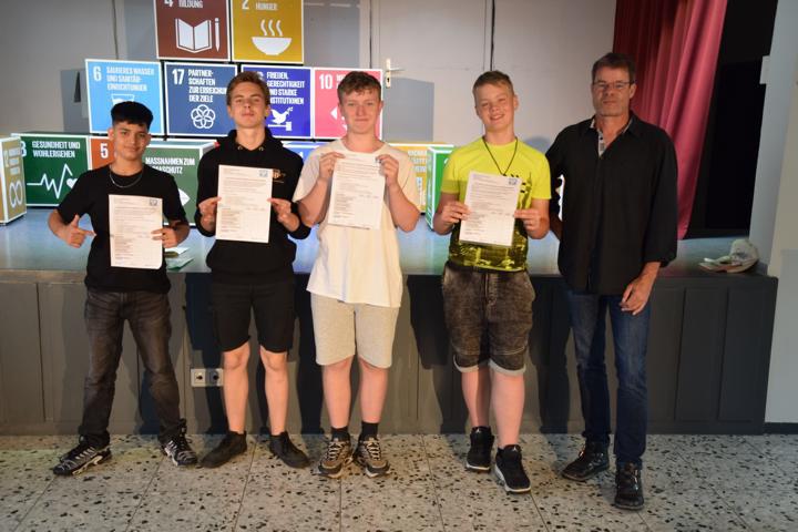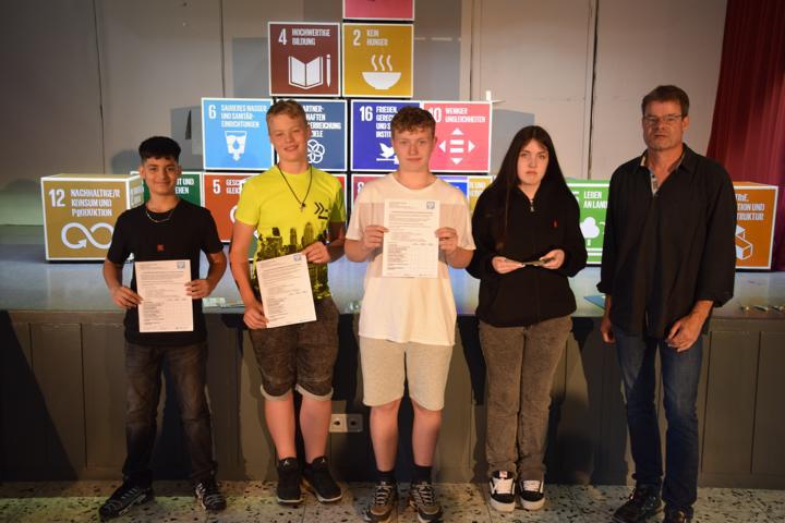 Alle vier Teilnehmer des Schulentscheids bekamen für ihre tollen Leistungen Urkunden und ein Buchgeschenk.