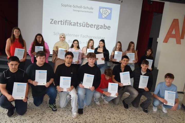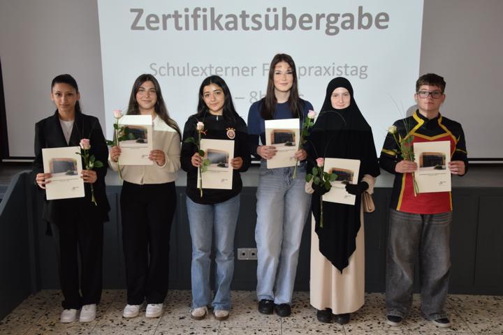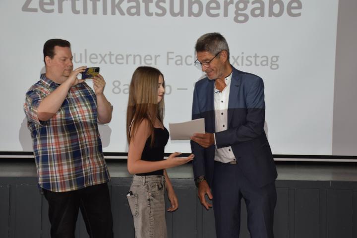 Zertifikatsübergabe schulexterner Fachpraxistag Jahrgang 8