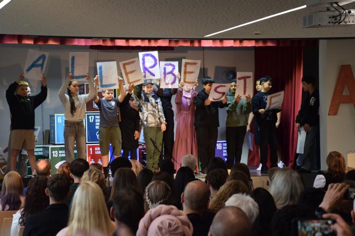 Alle Schülerinnen und Schüler vom Standort Kirchstraße trafen sich am 20. Dezember in der dortigen Aula, um mit einem rund 60-minütigen Programm, das neben Musik und Gedichtsvorträgen auch mehrere Weihnachtstheatertücke bot, die Ferien einzuläuten.