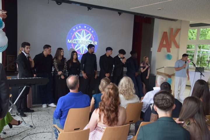 Die rund zweistündige Feier. die prall gefüllt war mit Musik, Rückblicken in Redebeiträgen, Videos und erneut einer "Wer-wird-Millionär"-Runde in der "Sophie-Scholl-Schul-Ausgabe", wurde abgerundet mit einem einem Empfang, der von den Schülerinnen und Schülern des siebten Jahrgangs unter der Leitung von Frau S. Möller vorbereitet wurde.